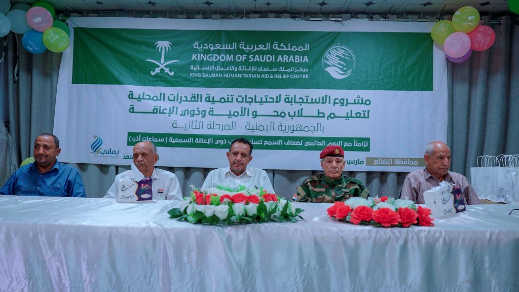شهد القائم بأعمال الغرفة التجارية بمحافظة الضالع أ. قاسم موسى ، اليوم الاربعاء حفل تدشين توزيع سماعات الأذن للأطفال من ذوي الاحتياجات الخاصة في مركز تدريب وتأهيل المعاقين بالضالع. يأتي هذا المشروع بدعم كريم من مركز الملك سلمان للإغاثة والأعمال الإنسانية، تحت شعار “مشروع الاستجابة لاحتياجات تنمية القدرات المحلية”.عبر الشريك المنفذ مؤسسة يماني للتنميه